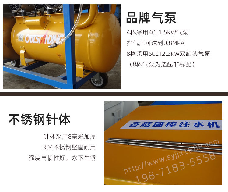 香菇菌棒注水機(jī)機(jī)型特點(diǎn) :可回收水,對供水壓力和水源無特殊要求,注水量可根據(jù)客戶技術(shù)要求,定時定量隨用隨調(diào),全新雙頭8棒循環(huán)注水模式,注水效率提高一倍,四面防濺防漏水,水回收利用率達(dá)到90%以上,高比例的循環(huán)回收水功能可有效節(jié)約用水,降低棚內(nèi)排濕難度,避免爛棒,可以在水源中按比例加入營養(yǎng)素有效提高香菇品質(zhì)和產(chǎn)量。